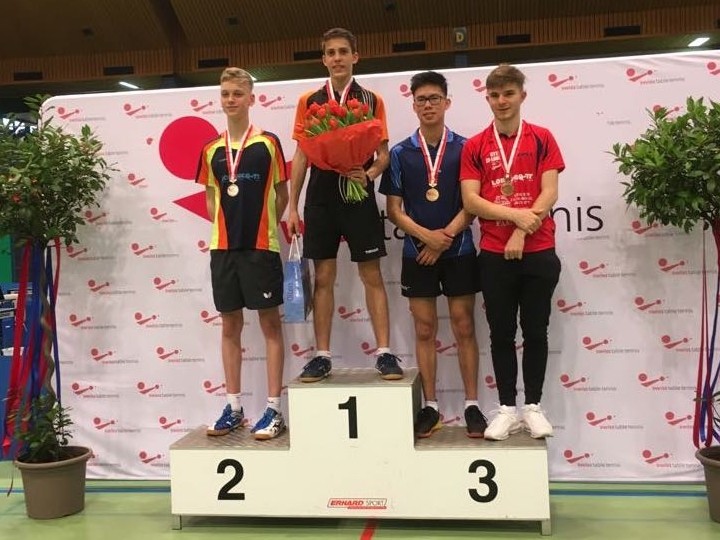 Elias Hardmeier dominiert die Kategorie U18 und wird ebenfalls Schweizermeister. Auch im Doppel steht Elias zuoberst auf dem Podest und in der Mixed-Konkurrenz wird es Bronze. Herzliche Gratulation.
