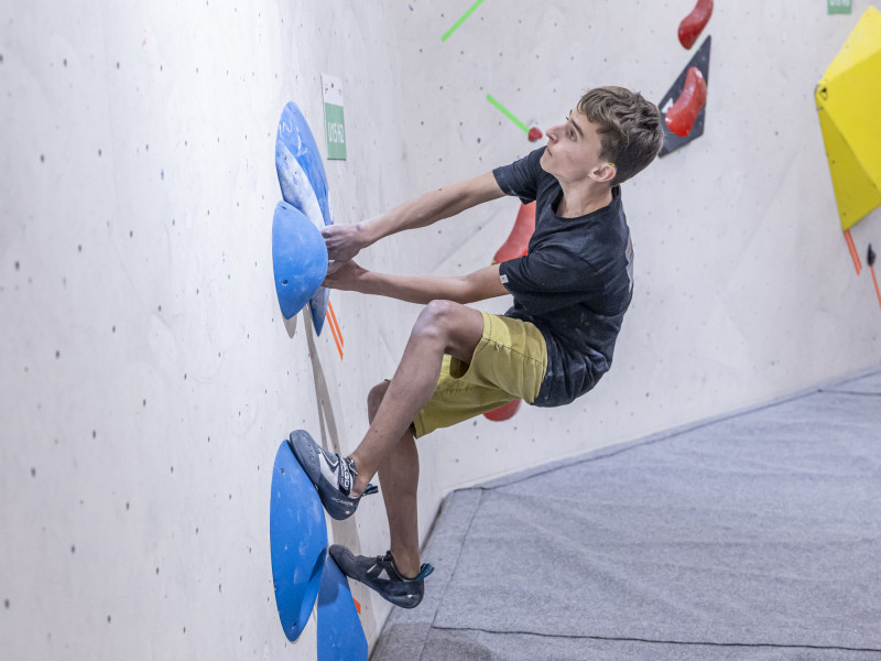 Auch Fynn war sehr erfolgreich an der Schweizermeisterschaft im Lead-Klettern im «Magnet» in Niederwangen. Er erreichte den guten 15. Rang.