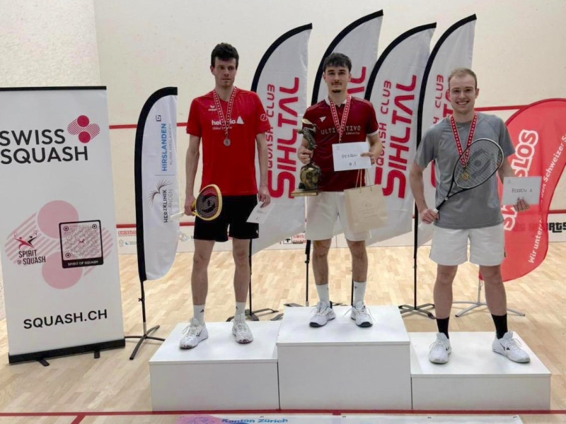 Badminton: An den Schweizermeisterschaften vom 6. bis 8. Februar 2026 dominierten gleich drei ehemalige KuSs ZO-Schüler. Auf dem Podest sind 1. David Bernet, 2. Robin Gadola und 3. Miguel Mathis.