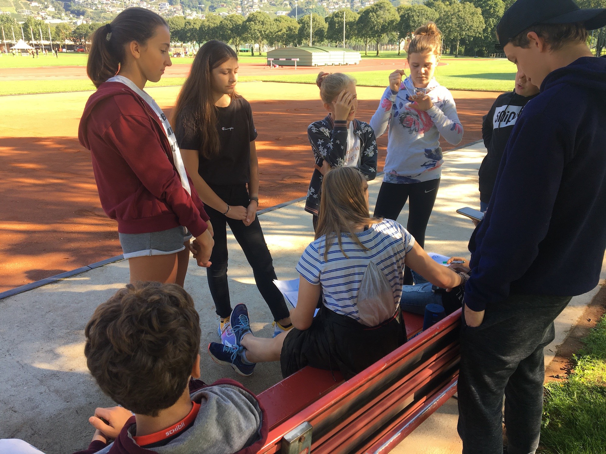 Mit einem gemeinsamen Mentaltraining starten die Schülerinnen und Schüler in den letzten Lagertag. Der von der 3. Sek organisierte und durchgeführte Gruppenparcours ist ein gelungener Abschluss eines tollen Lagers.